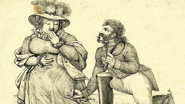 So, Lonely Caroline left England after being promised a couple thousand pounds a year. She visited her native Brunswick and went through Switzerland on her way to Italy. She hired a servant named Bartolomeo Pergami, and his sister became her lady-in-waiting. Caroline also bought a villa on Lake Como in Italy. Bartolomeo, of course, became her lover, and they traveled around the Mediterranean together, even visiting Napoleon’s old palace on the island of Elba. Their affair was sort of an open secret. Everyone knew something was happening, since they were always together, and also because Caroline was hiring his whole family — except his wife. Even Lord Byron wrote about Bartolomeo and Caroline and took George’s side.