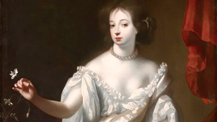 Hortense Mancini was quite an interesting lady. She had a husband who knocked out female servants’ front teeth, she ran away from him, and became a royal mistress.